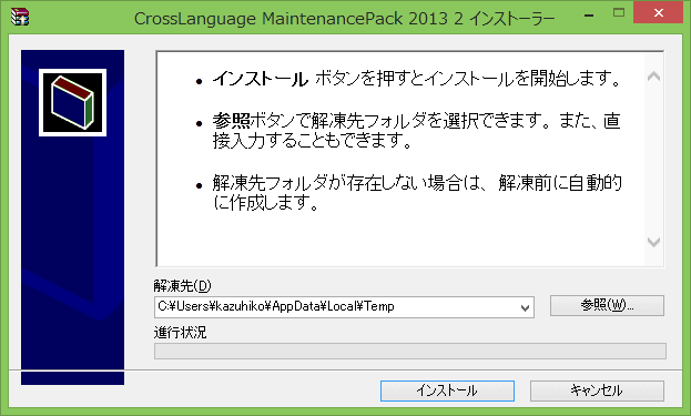 インストール先のフォルダの場所を選択します。変更する必要はありません。
