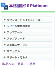 [お手持ちの製品一覧]から、「本格翻訳 10 Platinum」を選択します。