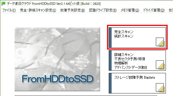 完全スキャンの設定についは、「国産ドライブメンテナンス FromHDDtoSSD:完全・詳細スキャン設定」を参照してください。